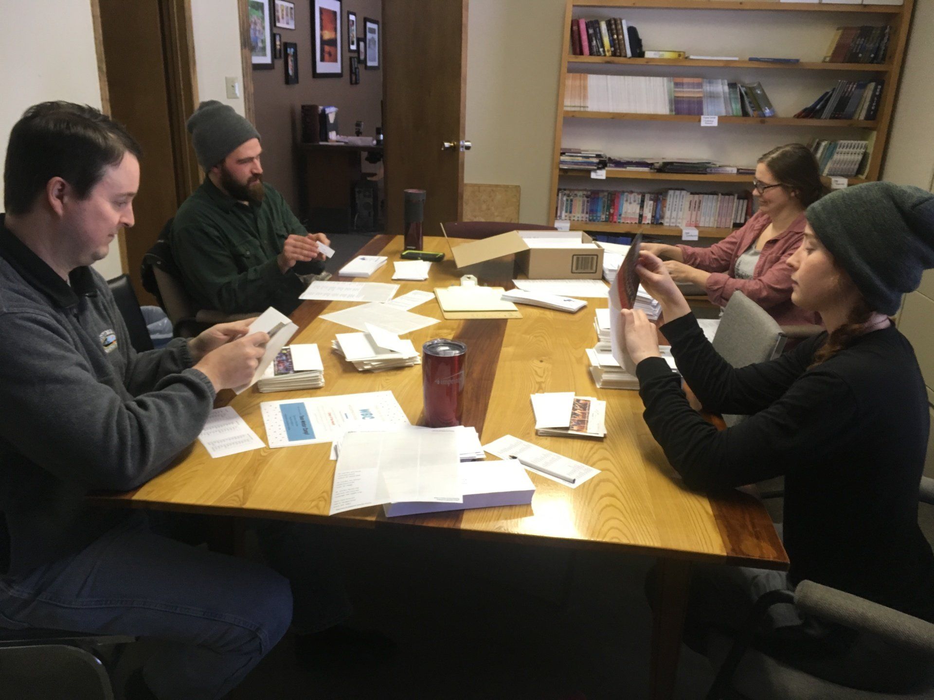 Mailing newsletters, event invitations, and Christmas cards is always a group effort!
