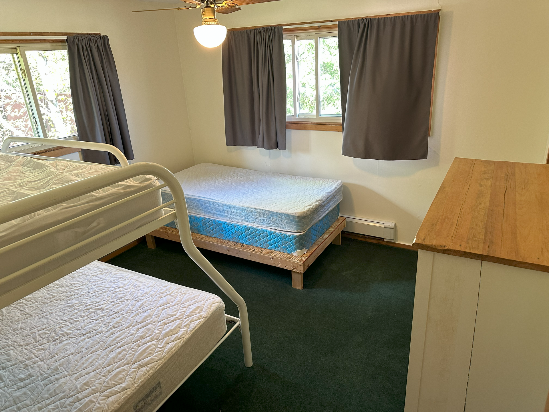 Bedroom 2: Single Bed and Bunk Bed with Single Bed on top and Full Bed on bottom, upstairs